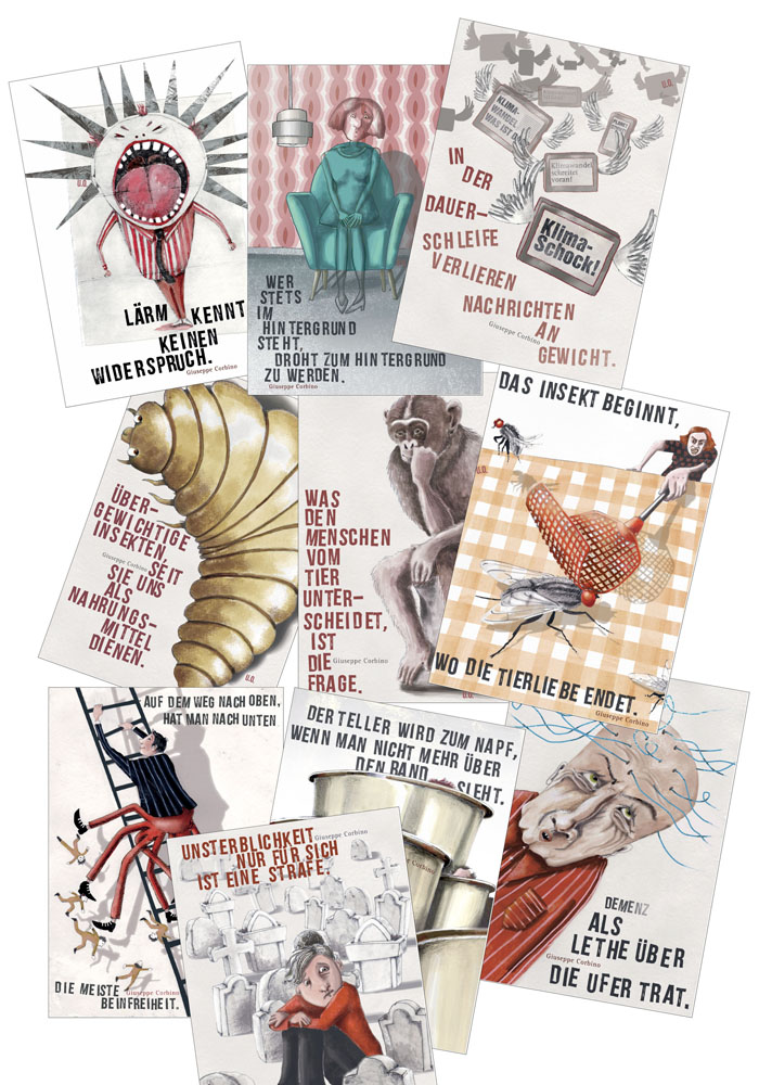 Ute Ohlms hat 10 Aphorismen von Giuseppe Corbino illustriert.
